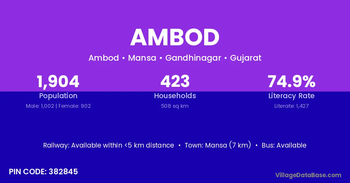 Mansa (7 km) is the nearest town to Ambod village for major economic activities and is located approximately 7 km away.