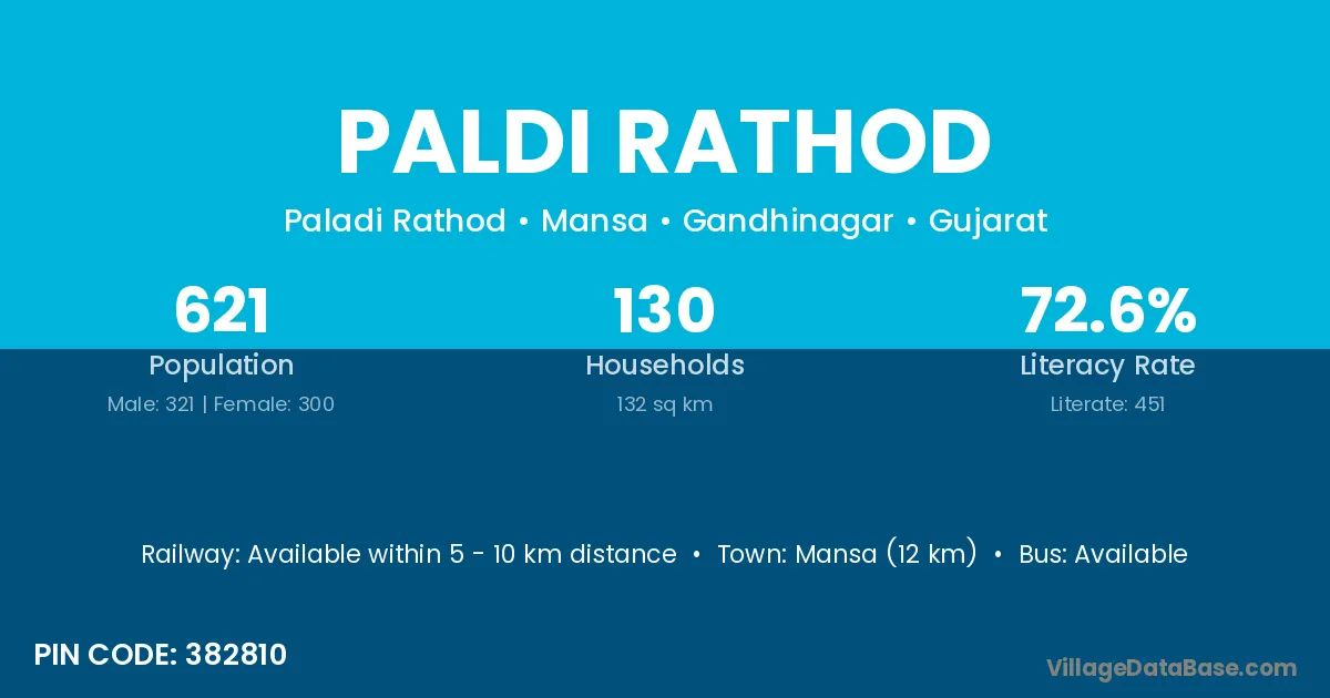 Paldi Rathod village has a total population of 621 people, of which 321 are males and 300 are females.