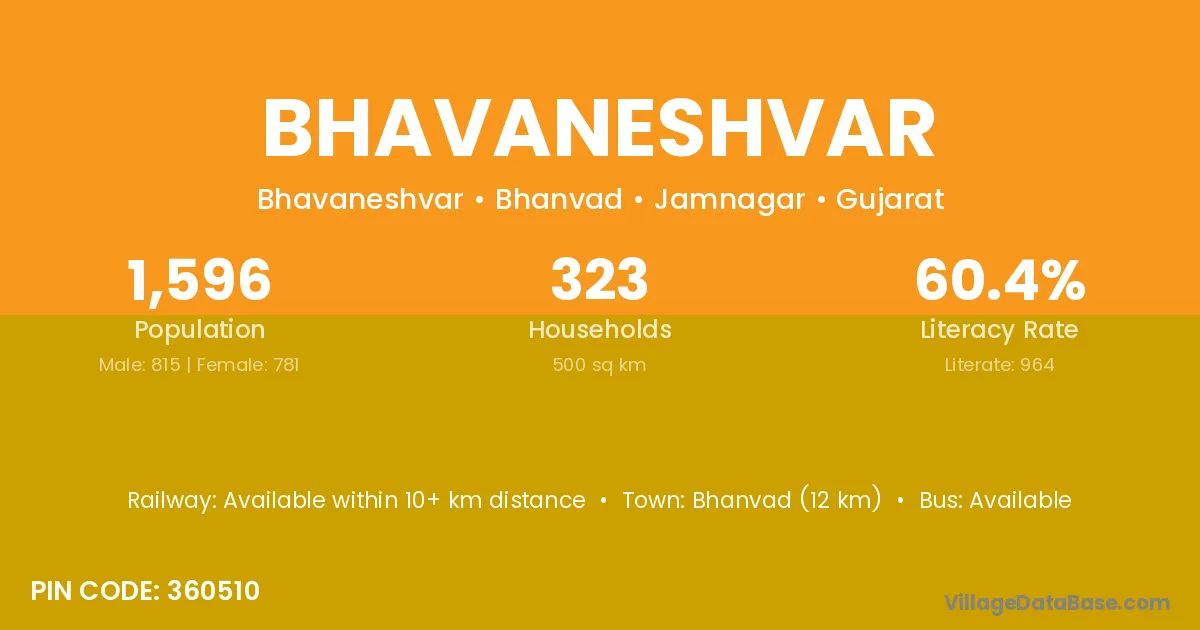 Bhanvad (12 km) is the nearest town to Bhavaneshvar village for major economic activities and is located approximately 12 km away.