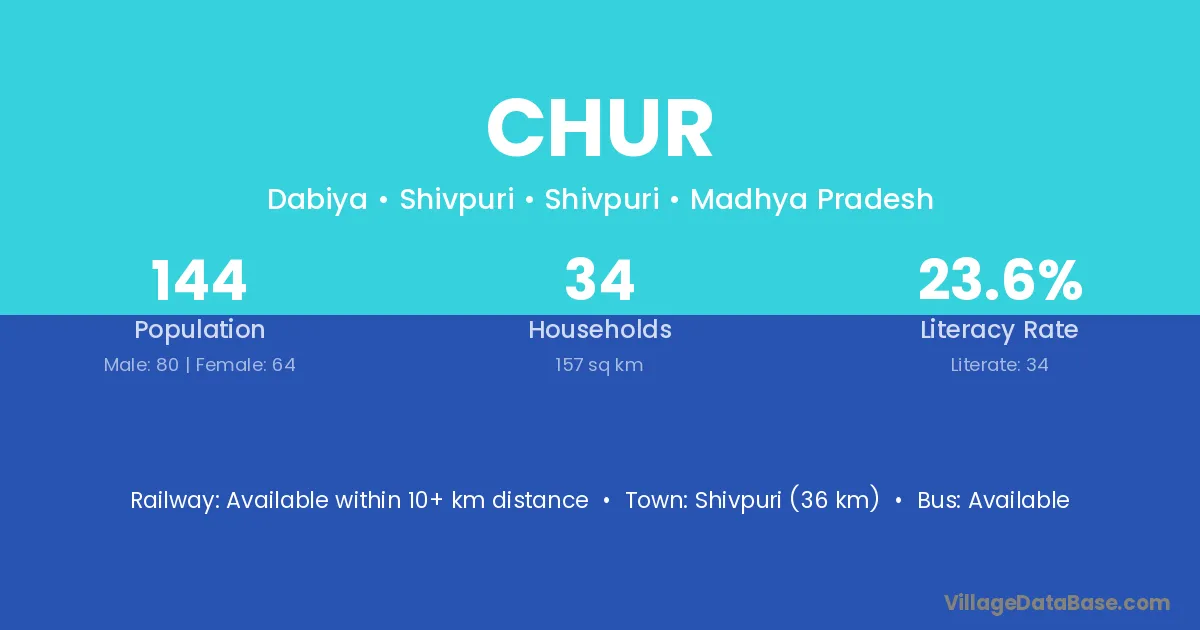 Jamjodhpur (14 km) is the nearest town to Chur village for major economic activities and is located approximately 14 km away.