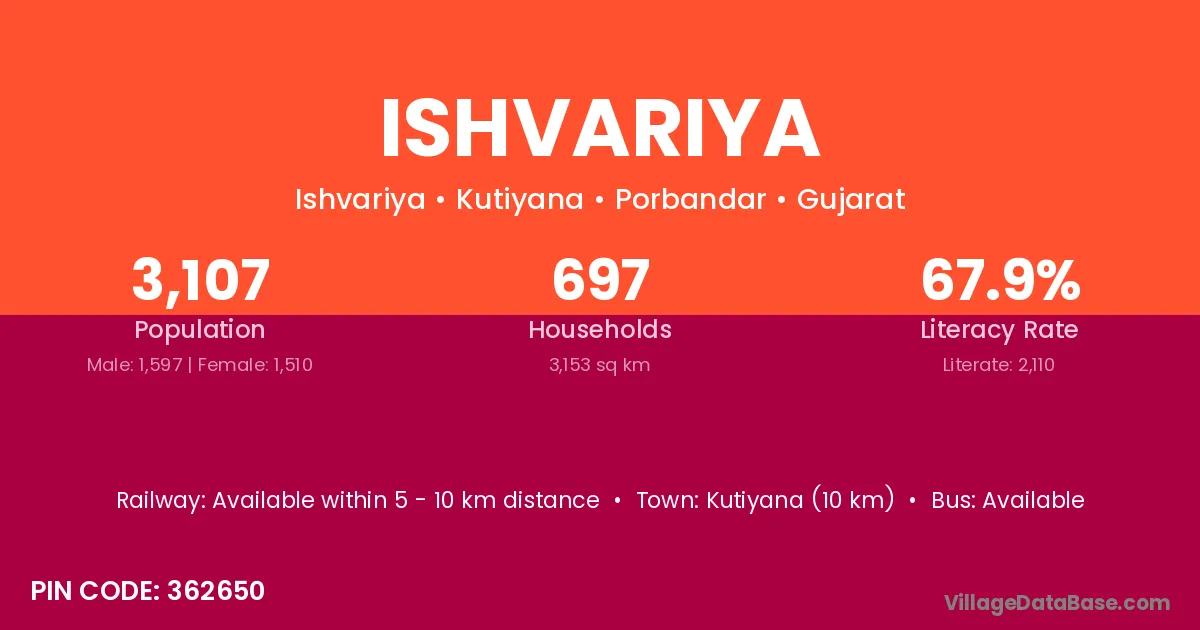Jamjodhpur (14 km) is the nearest town to Ishvariya village for major economic activities and is located approximately 14 km away.