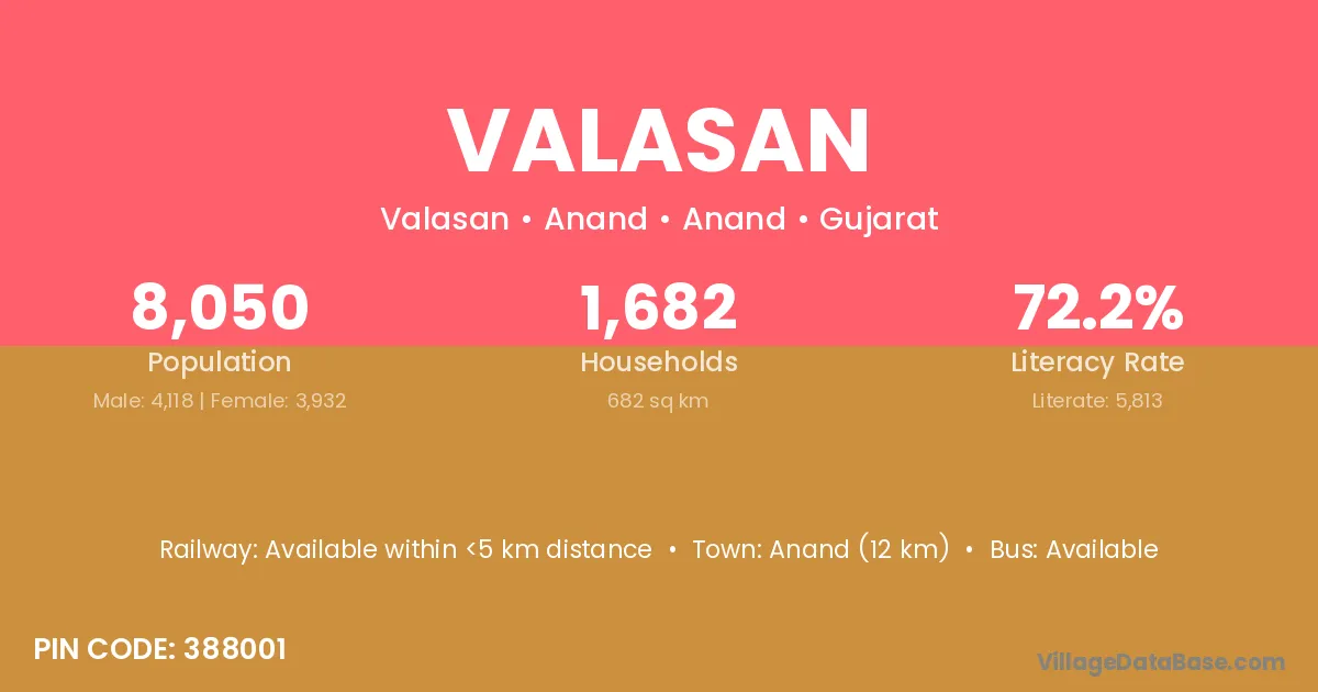 Jamjodhpur (19 km) is the nearest town to Valasan village for major economic activities and is located approximately 19 km away.