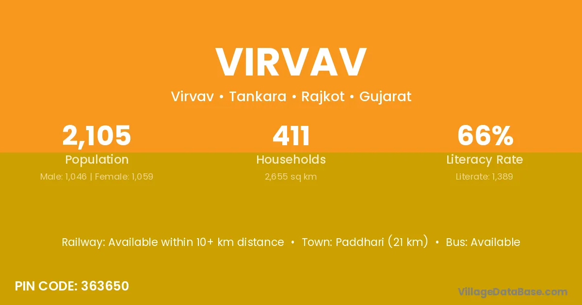 Kalavad (7 km) is the nearest town to Virvav village for major economic activities and is located approximately 7 km away.