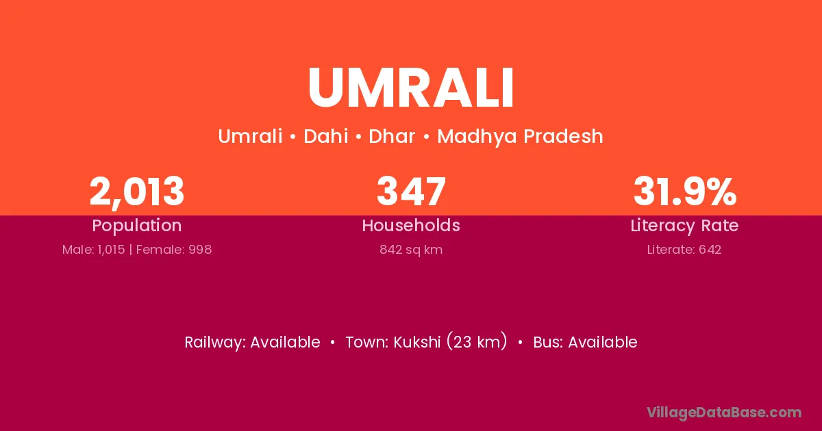 Jetpur (30 km) is the nearest town to Umrali village for major economic activities and is located approximately 30 km away.