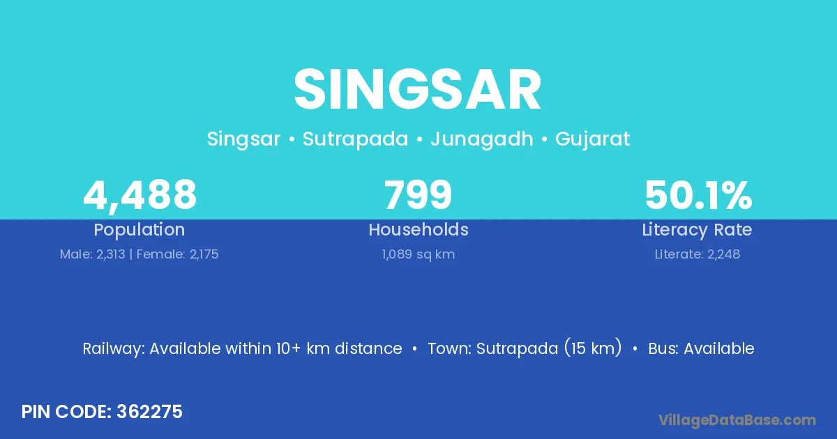 Sutrapada (15 km) is the nearest town to Singsar village for major economic activities and is located approximately 15 km away.