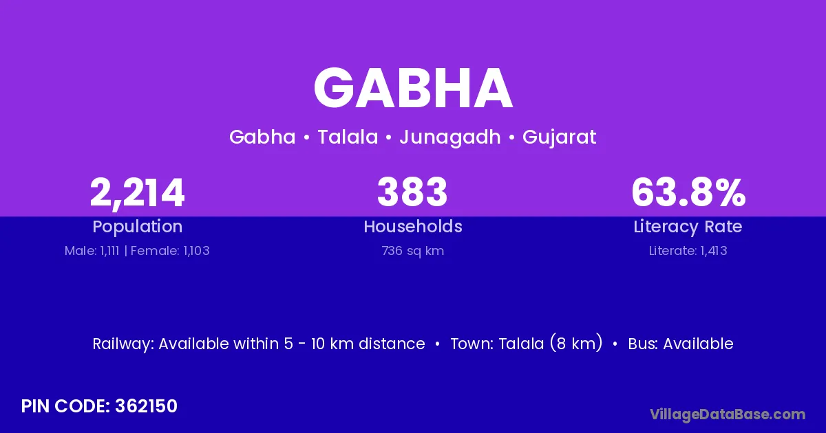 Talala (8 km) is the nearest town to Gabha village for major economic activities and is located approximately 8 km away.