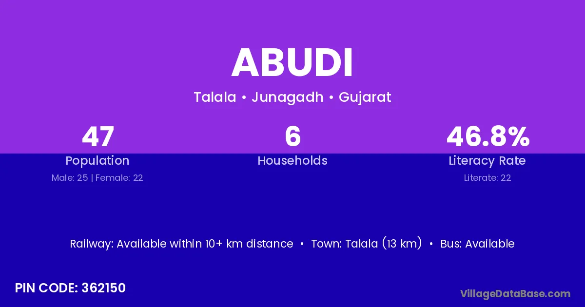 Abudi village is located in the Una Taluka of the Junagadh district in Gujarat .