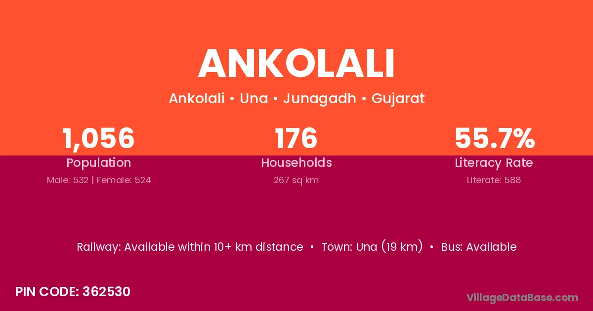 Ankolali village has a total population of 1,056 people, of which 532 are males and 524 are females.