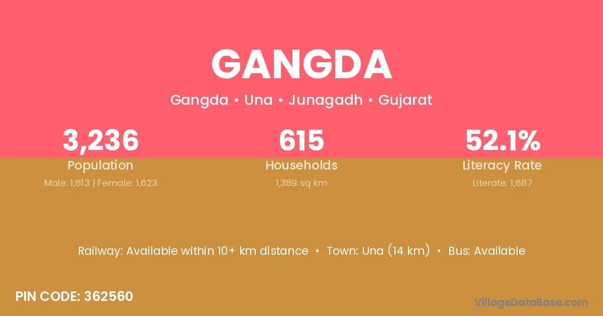 Gangda village is located in the Una Taluka of the Junagadh district in Gujarat .