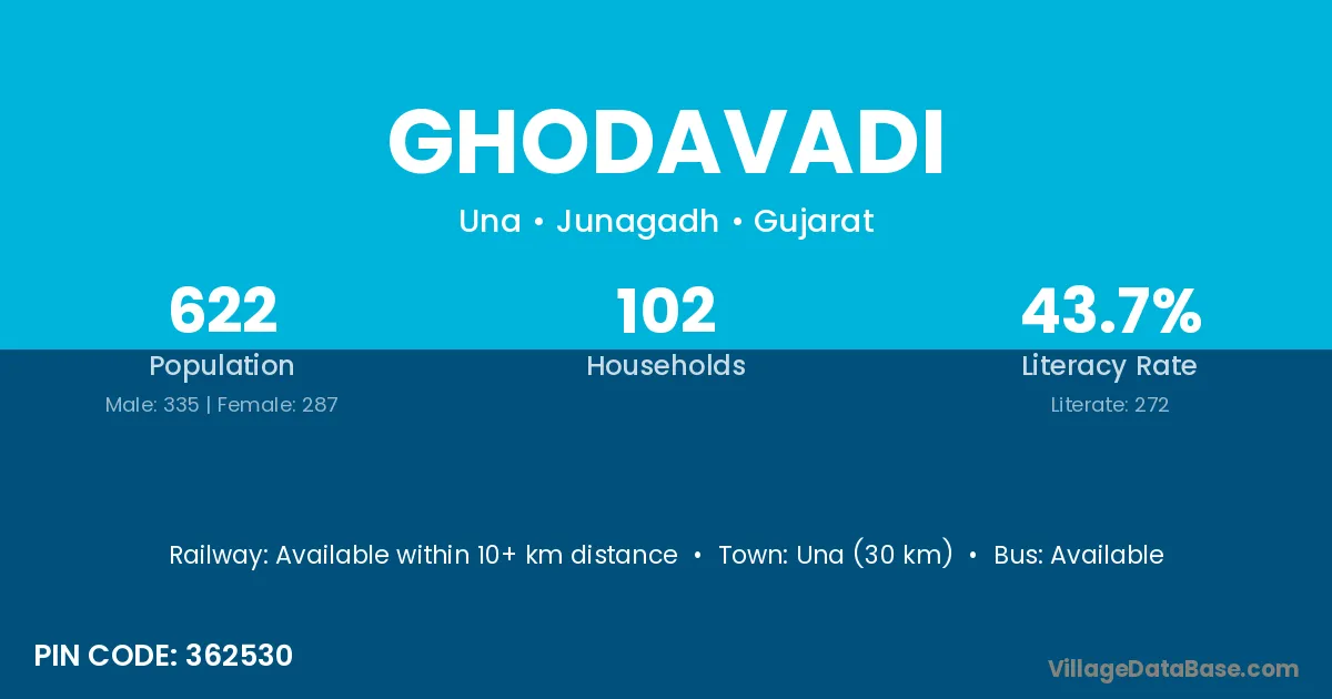 Una (30 km) is the nearest town to Ghodavadi village for major economic activities and is located approximately 30 km away.