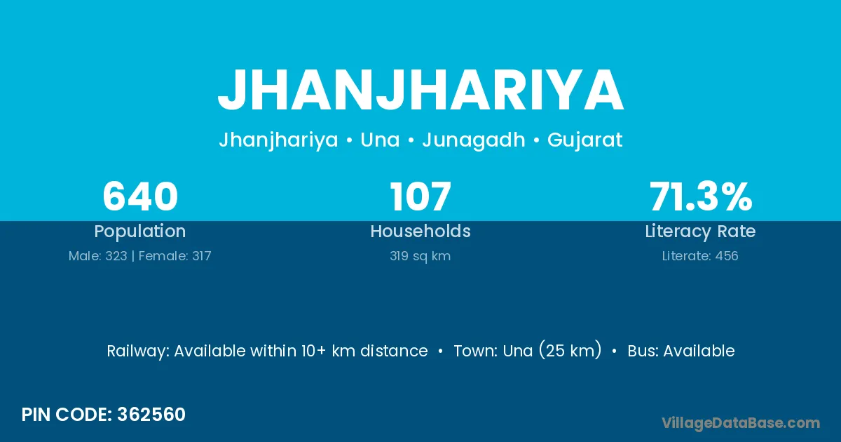 Jhanjhariya village has a total population of 640 people, of which 323 are males and 317 are females.