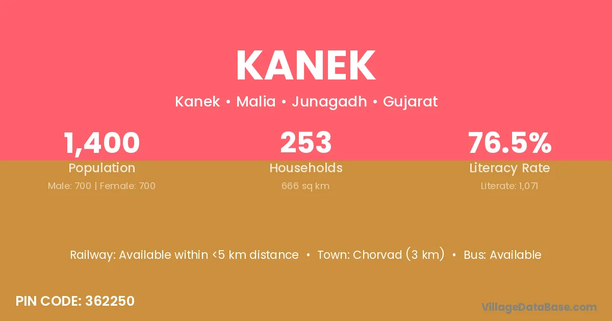 According to Census 2011 information, the village code of Kanek village is 362250.