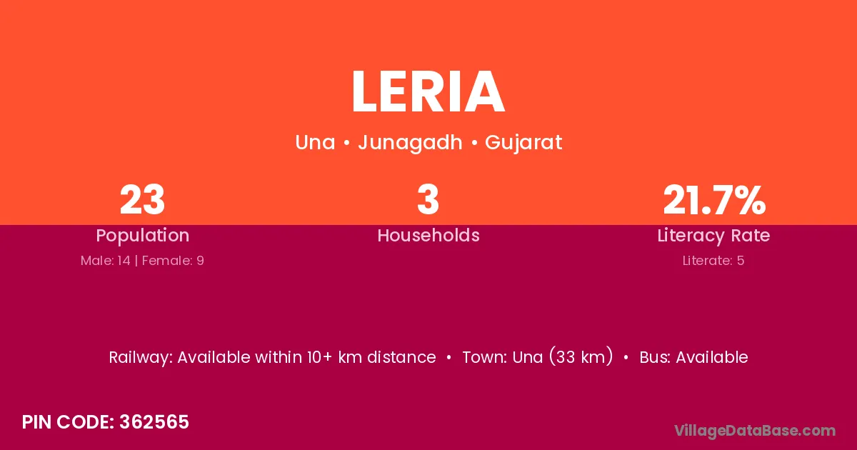 Una (33 km) is the nearest town to Leria village for major economic activities and is located approximately 33 km away.
