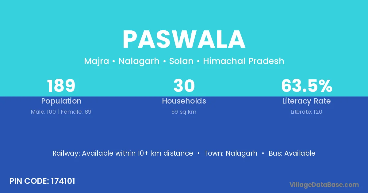 Paswala village has a total population of 2,534 people, of which 1,252 are males and 1,282 are females.
