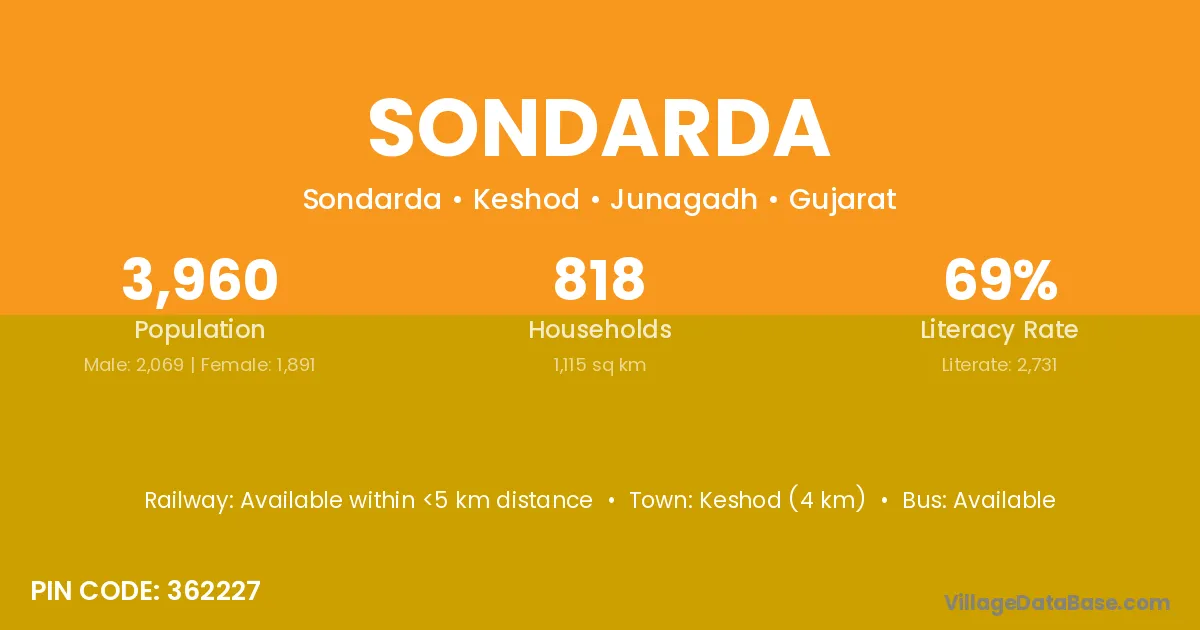 According to Census 2011 information, the village code of Sondarda village is 362565.