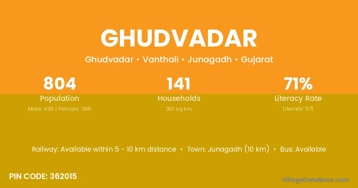 Junagadh (10 km) is the nearest town to Ghudvadar village for major economic activities and is located approximately 10 km away.
