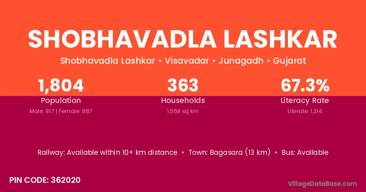 According to Census 2011 information, the village code of Shobhavadla Lashkar village is 362020.