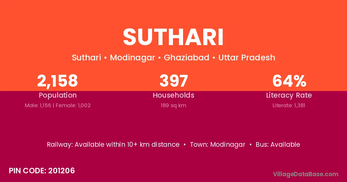 The literacy rate of Suthari village is 48.45%. Male literacy stands at 57.19% and female literacy at 39.88%.