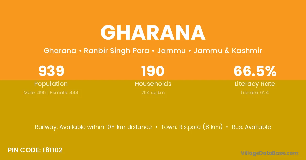 Gharana village has a total population of 3,469 people, of which 1,757 are males and 1,712 are females.