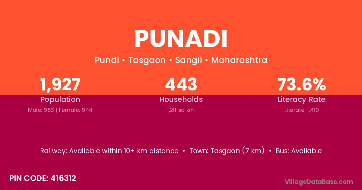 Mandvi (20 km) is the nearest town to Punadi village for major economic activities and is located approximately 20 km away.