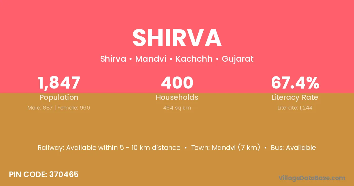 Mandvi (7 km) is the nearest town to Shirva village for major economic activities and is located approximately 7 km away.