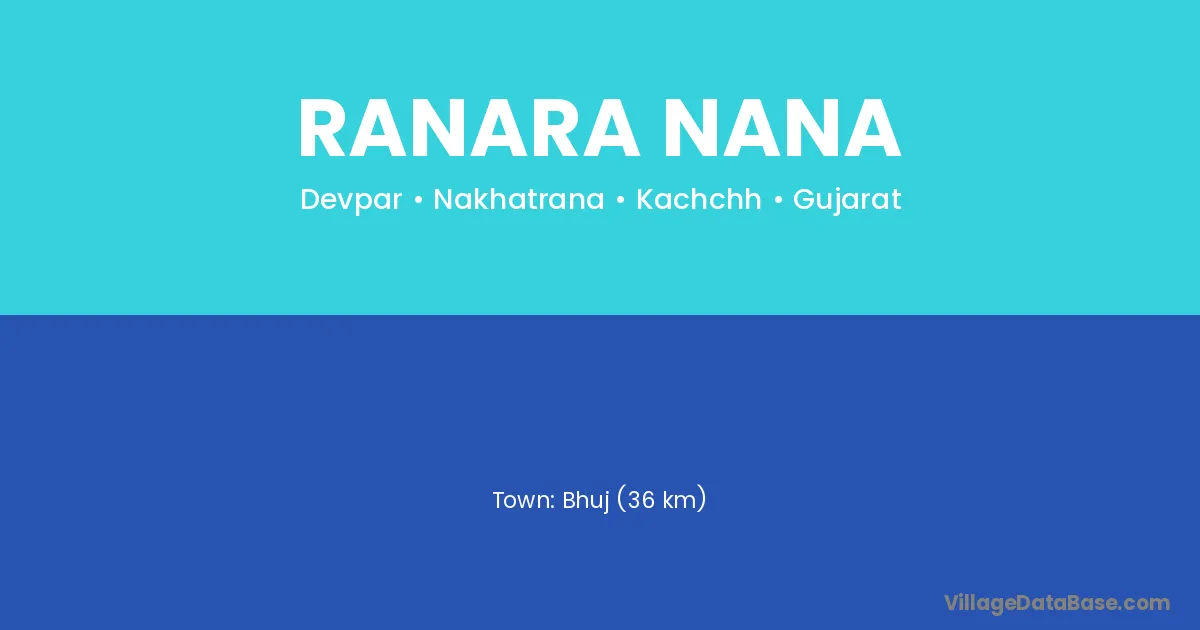 Bhuj (36 km) is the nearest town to Ranara Nana village for major economic activities and is located approximately 36 km away.