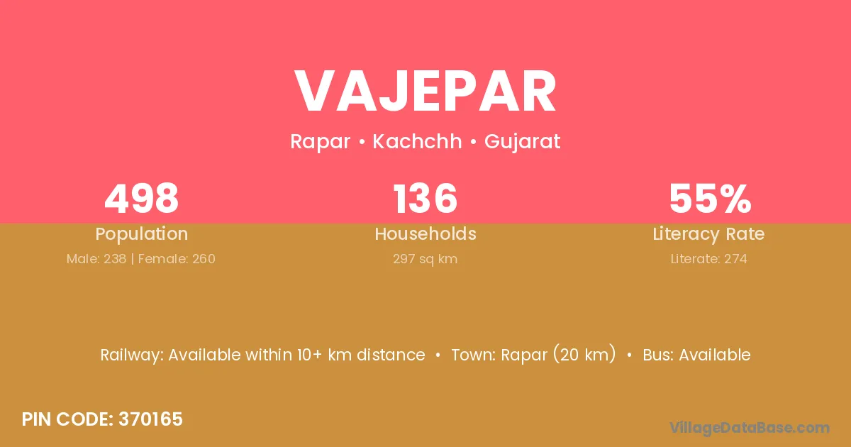 Rapar (20 km) is the nearest town to Vajepar village for major economic activities and is located approximately 20 km away.