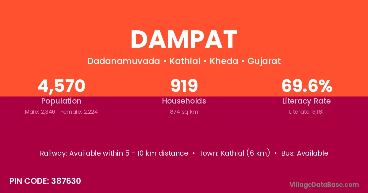 According to Census 2011 information, the village code of Dampat village is 387630.