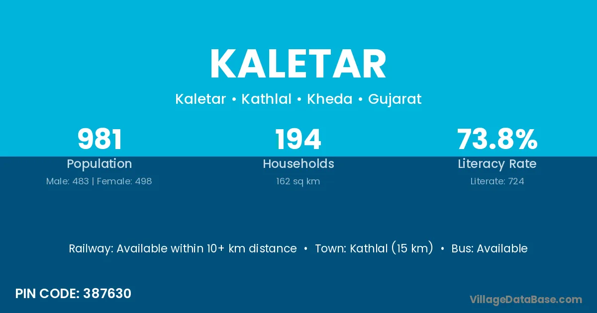 Kathlal (15 km) is the nearest town to Kaletar village for major economic activities and is located approximately 15 km away.