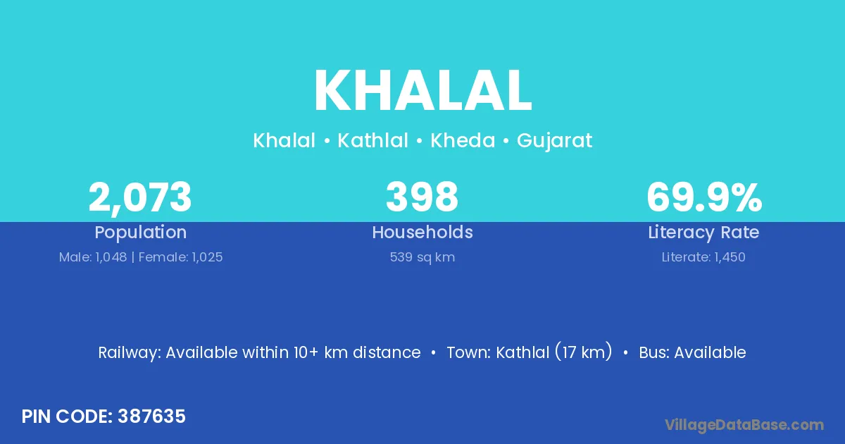 Kathlal (17 km) is the nearest town to Khalal village for major economic activities and is located approximately 17 km away.
