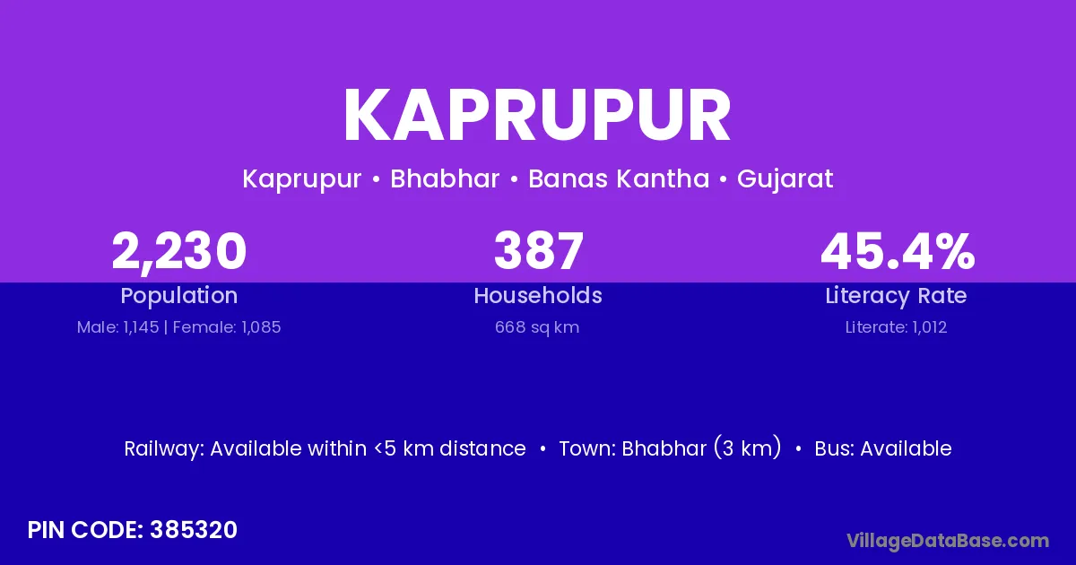 According to Census 2011 information, the village code of Kaprupur village is 387305.