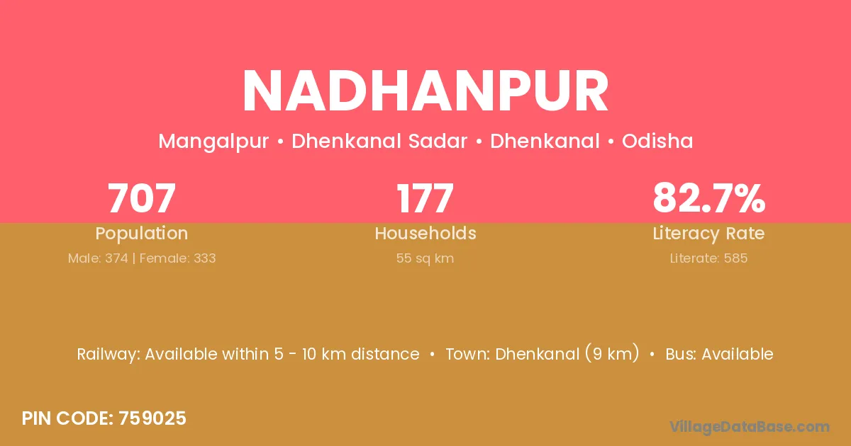 Dholka (11 km) is the nearest town to Nadhanpur village for major economic activities and is located approximately 11 km away.