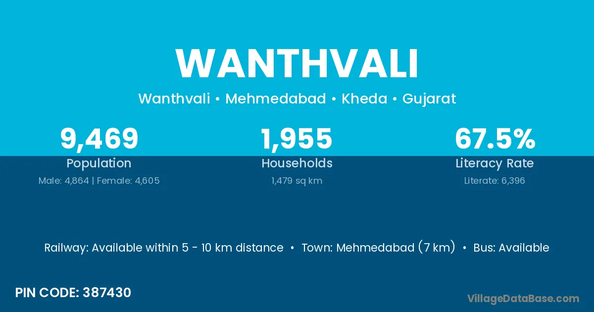 Mehmedabad (7 km) is the nearest town to Wanthvali village for major economic activities and is located approximately 7 km away.