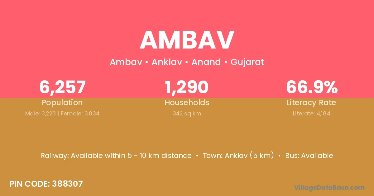 Thasra (5 km) is the nearest town to Ambav village for major economic activities and is located approximately 5 km away.