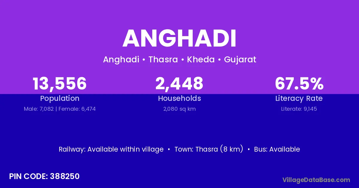 Thasra (8 km) is the nearest town to Anghadi village for major economic activities and is located approximately 8 km away.