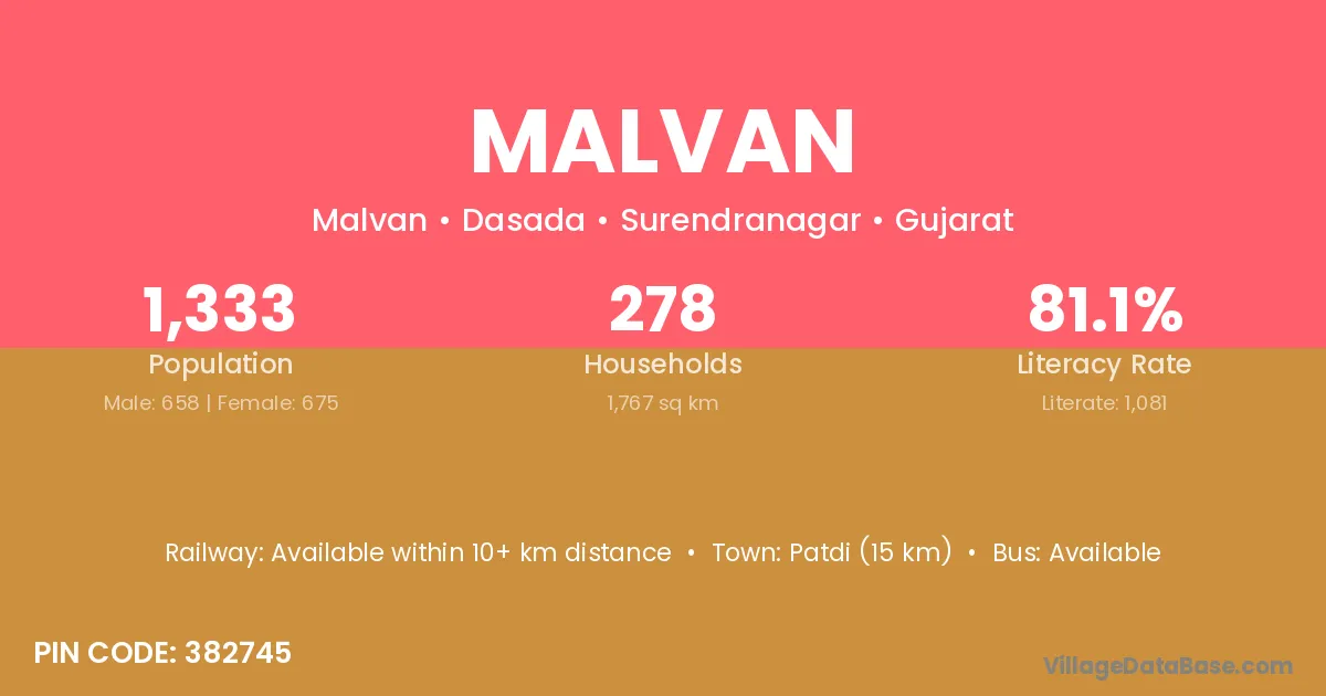 Thasra (10 km) is the nearest town to Malvan village for major economic activities and is located approximately 10 km away.