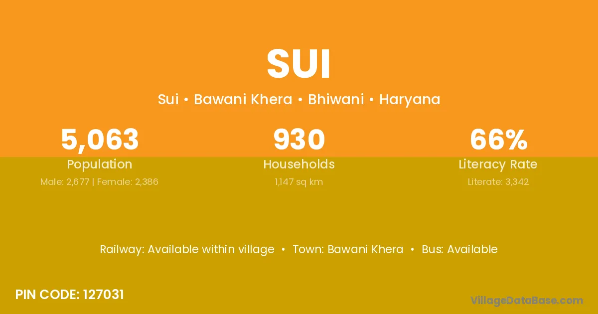 Sui village has a total population of 3,128 people, of which 1,604 are males and 1,524 are females.