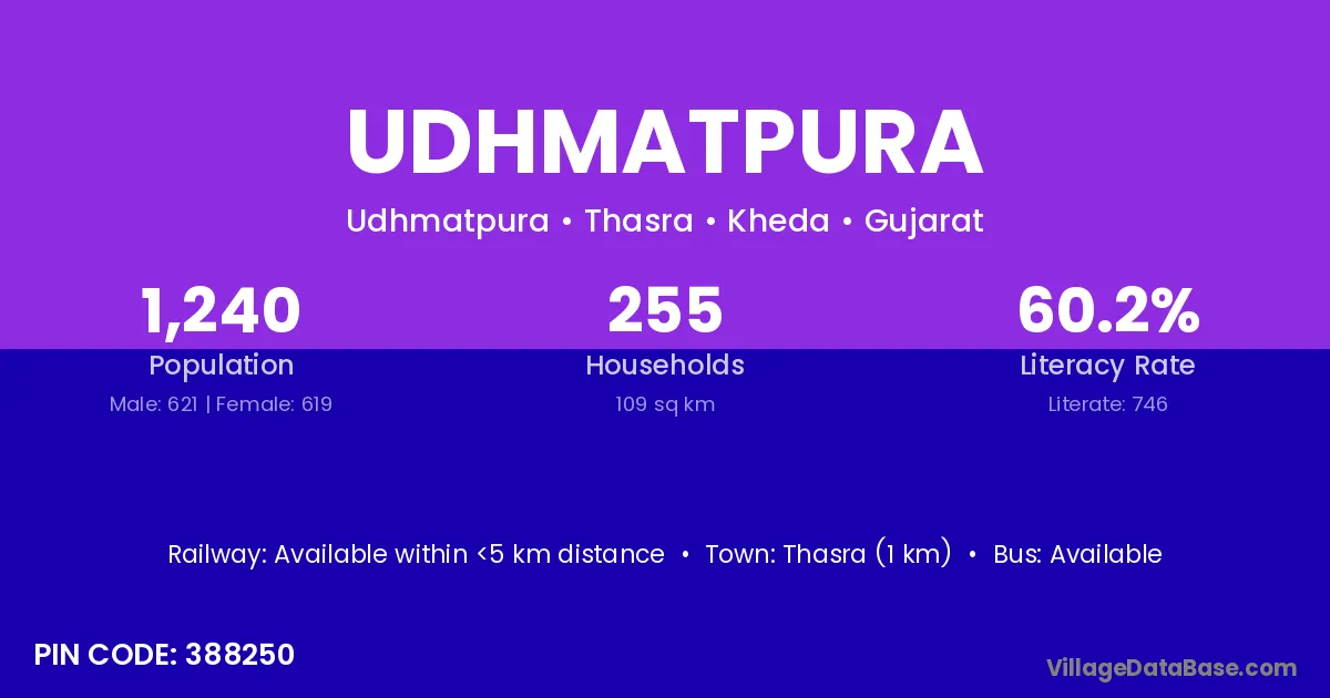 Thasra (1 km) is the nearest town to Udhmatpura village for major economic activities and is located approximately 1 km away.