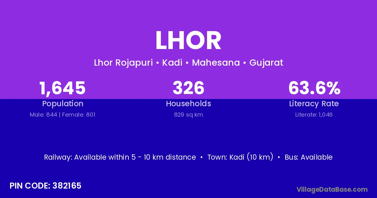Kadi (10 km) is the nearest town to Lhor village for major economic activities and is located approximately 10 km away.