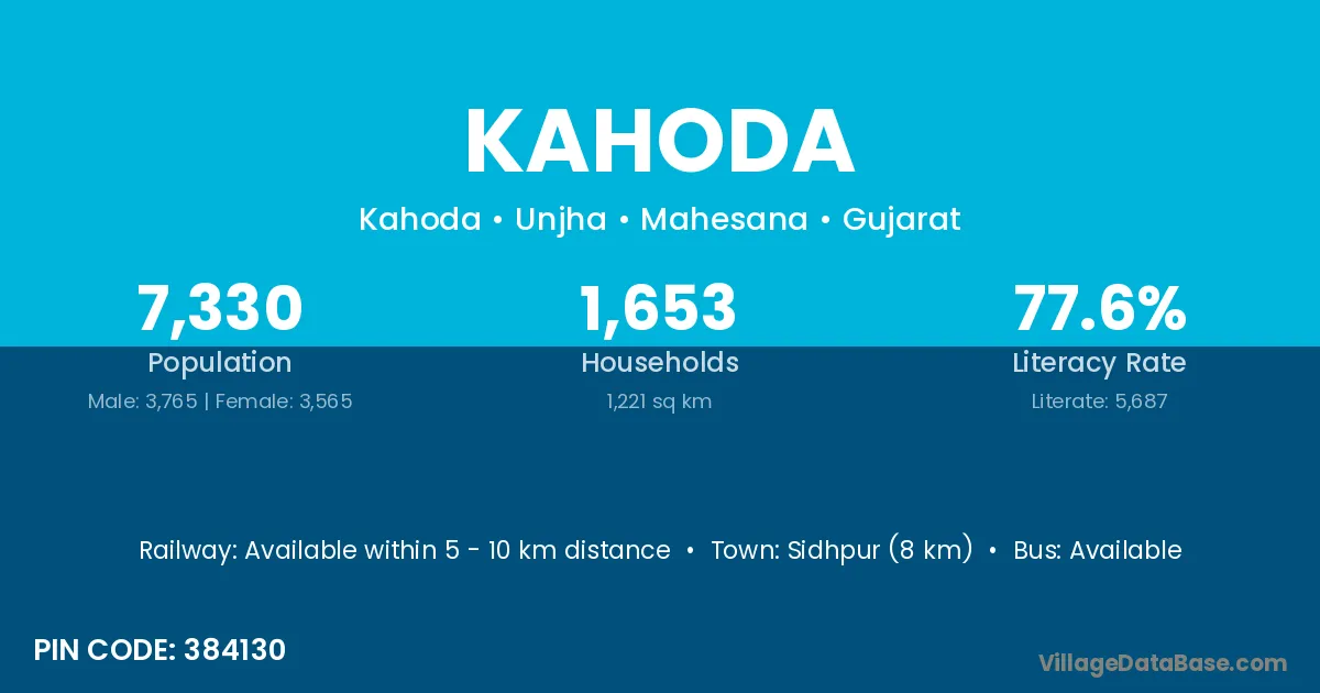 Sidhpur (8 km) is the nearest town to Kahoda village for major economic activities and is located approximately 8 km away.