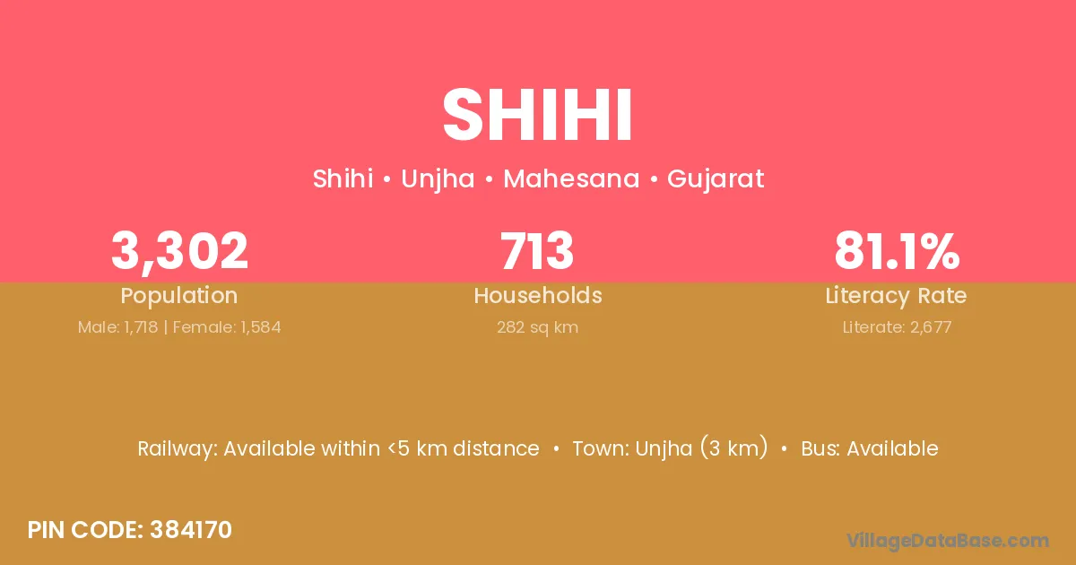 Unjha (3 km) is the nearest town to Shihi village for major economic activities and is located approximately 3 km away.