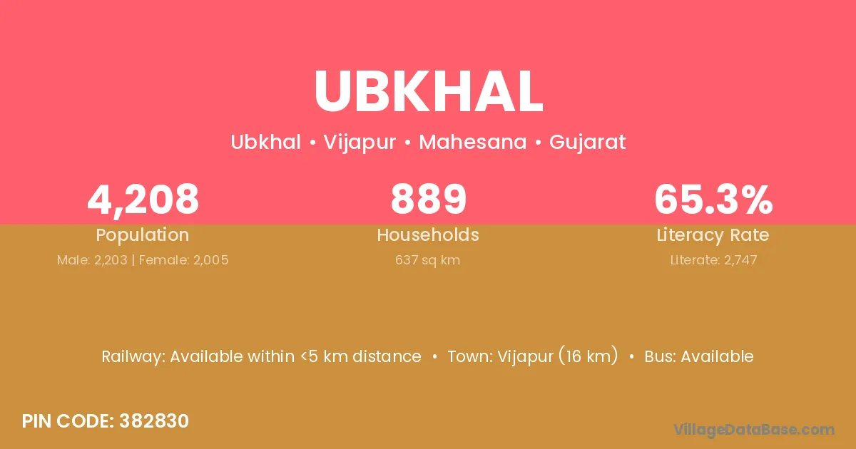 Vijapur (16 km) is the nearest town to Ubkhal village for major economic activities and is located approximately 16 km away.