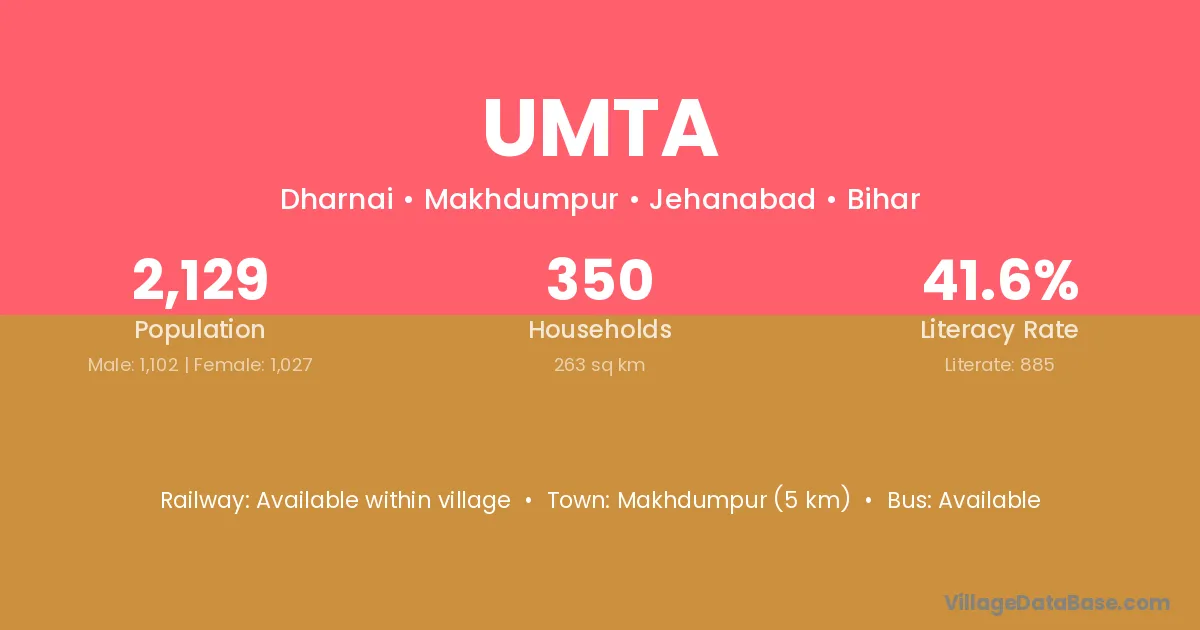 Umta village has a total population of 8,119 people, of which 4,192 are males and 3,927 are females.