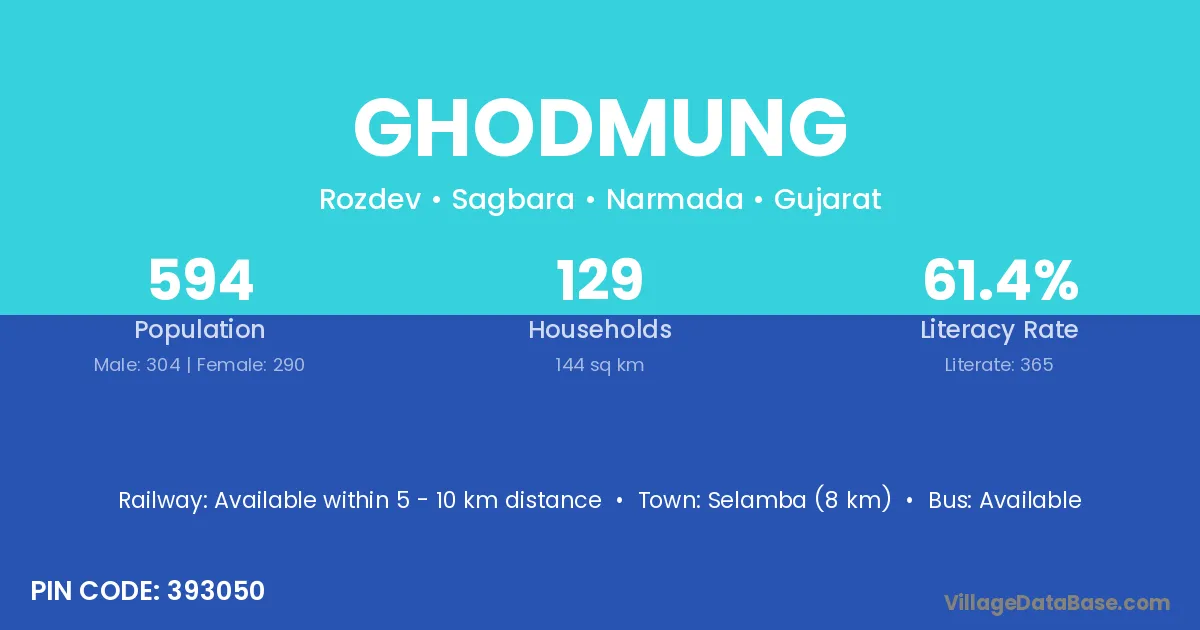 According to Census 2011 information, the village code of Ghodmung village is 393050.