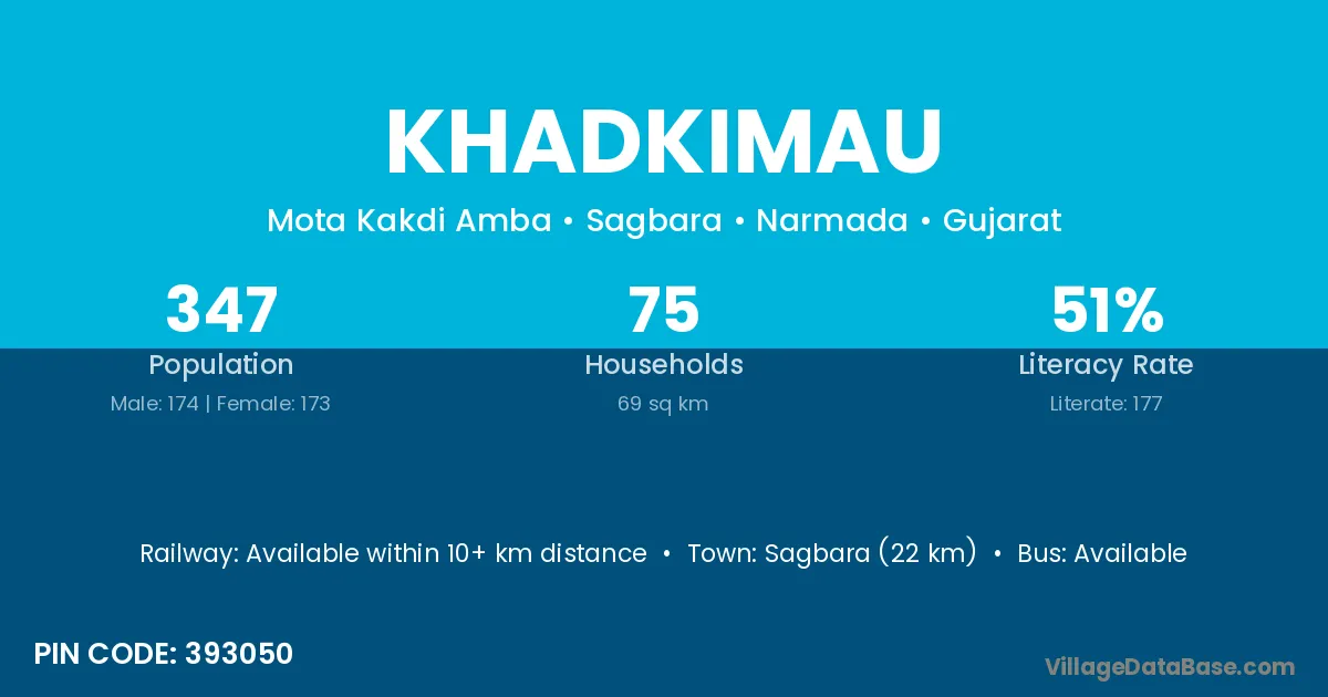Sagbara (22 km) is the nearest town to Khadkimau village for major economic activities and is located approximately 22 km away.