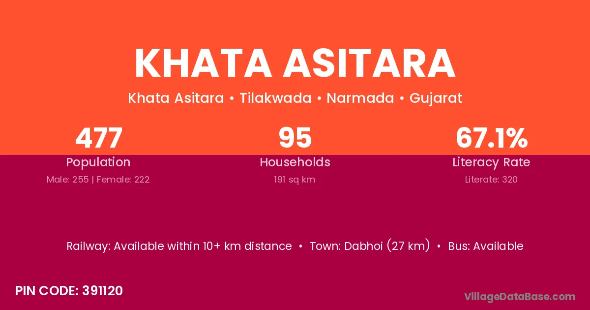Dabhoi (27 km) is the nearest town to Khata Asitara village for major economic activities and is located approximately 27 km away.