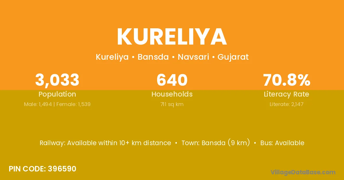 Bansda (9 km) is the nearest town to Kureliya village for major economic activities and is located approximately 9 km away.