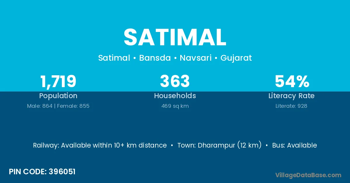 According to Census 2011 information, the village code of Satimal village is 396051.