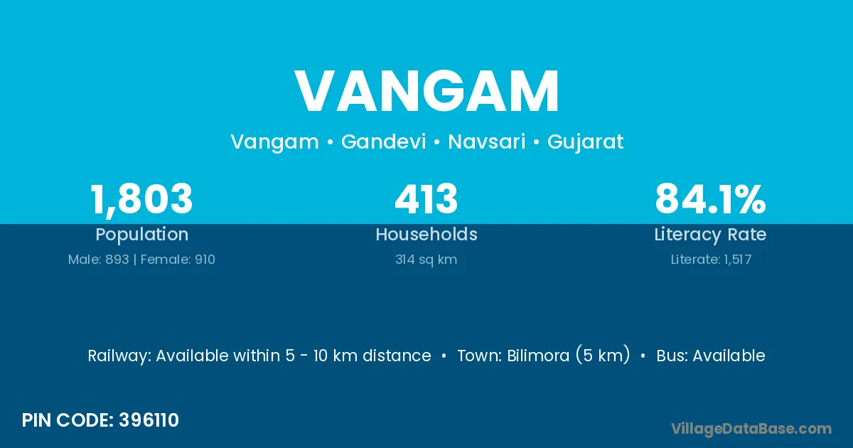 Bilimora (5 km) is the nearest town to Vangam village for major economic activities and is located approximately 5 km away.