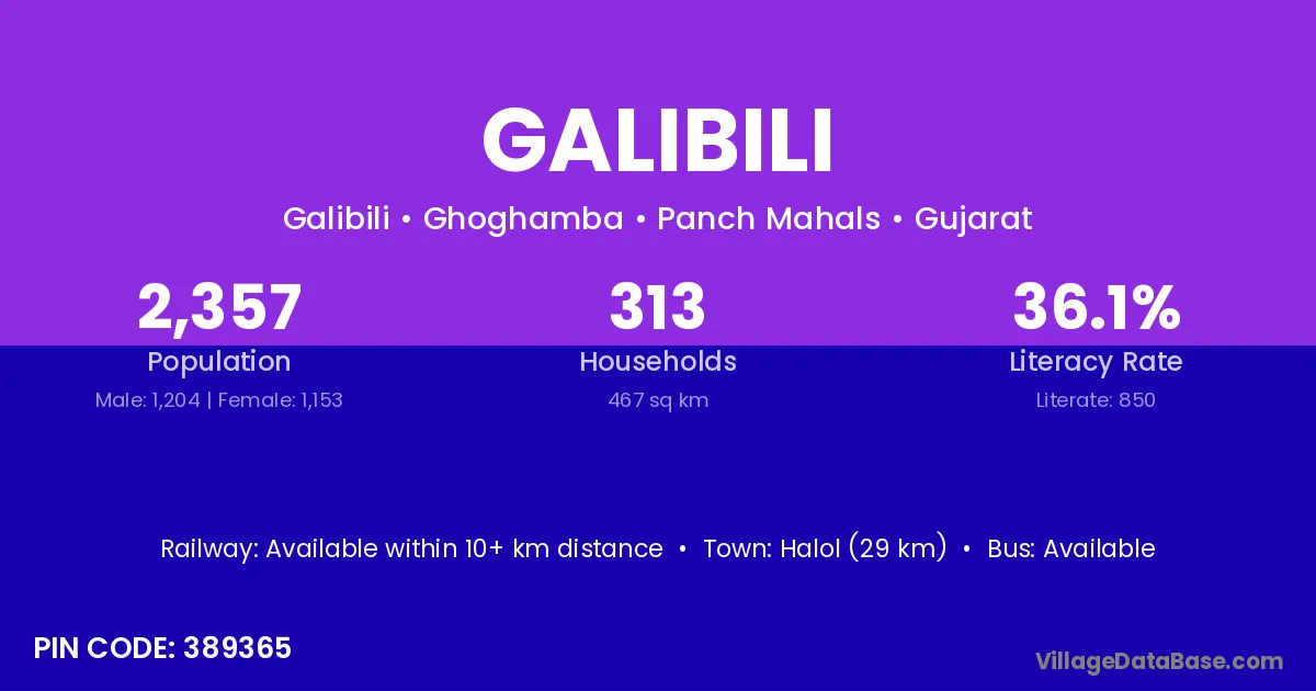 Halol (29 km) is the nearest town to Galibili village for major economic activities and is located approximately 29 km away.